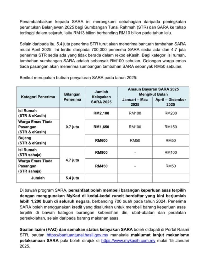 Kombinasi bantuan ini memastikan rakyat mendapat sokongan menyeluruh dalam menghadapi cabaran kos sara hidup.
